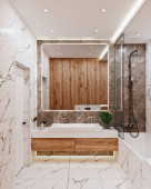nowoczesny wystrój łazienki z marmuru płytek i drewna