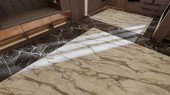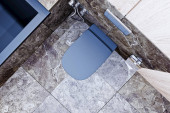 nowoczesny wystrój łazienki z marmuru płytek i drewna