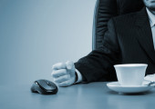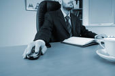 młody biznesmen, pracuje w biurze, w jego miejscu pracy.