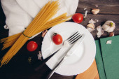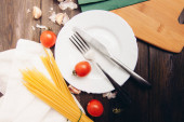 włoskiej kuchni składników do gotowania pomidorów wiśniowych makaron czosnek