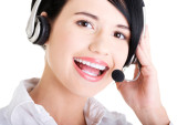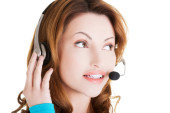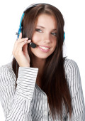 piękna kobieta z zestawu słuchawkowego uśmiechający się
