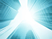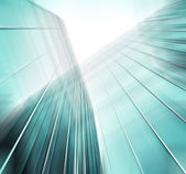 panoramiczne i potencjalnych szeroki kąt widzenia do stali jasnoniebieskie tło wzrost szkła wysoki budynek drapacz handlowych nowoczesne miasto przyszłości. Koncepcja Biznesowa sukcesy architektury przemysłowej