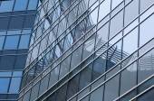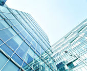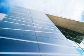 panoramiczne i potencjalnych szeroki kąt widzenia do stali jasnoniebieskie tło wzrost szkła wysoki budynek drapacz handlowych nowoczesne miasto przyszłości. Koncepcja Biznesowa sukcesy architektury przemysłowej