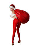 piękna dziewczyna w czerwonej santa kapelusz na białym tle