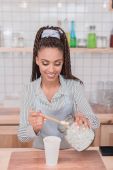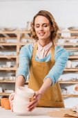 Młoda kobieta rzemieślnik zajmuje się produkcją świec woskowych własnej produkcji