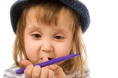 portret młodej dziewczyny z szczoteczka do zębów w ręku