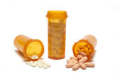 trzy butelki leków na receptę w butelkach zamkniętych