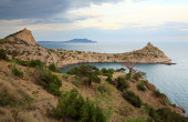 widok na karadag (rezerwy na miejscu starożytnego wygasły wulkan - Krym, Ukraina)
