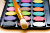koncepcja palety i farby pędzelkiem malarzy