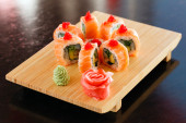 Zdjęcie "Sushi na deski drewno" może być wykorzystywane do celów osobistych i komercyjnych zgodnie z warunkami zakupionej licencji Royalty-free. Obraz jest dostępny do pobrania w jakości wysokiej rozdzielczości do 5760x3840.