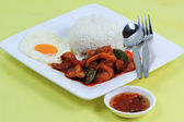 mieszać smażone owoce morza chili wklej z jajkiem i steam ryżu