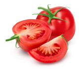 Pomidor z plastrami izolowanymi na białym tle ze ścieżką wycinania i pełną głębią ostrości.