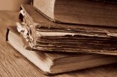 Stare książki i Stary zegar alarm, z efektem retro