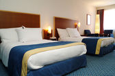 Podwójne łóżko w nowoczesnym pokoju wewnętrznym