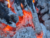 Tło płomieni i żarzących się żarów w ognisku