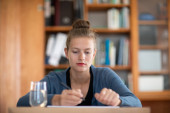 Zdjęcie "młoda kobieta studiuje i pisze w salonie" może być wykorzystywane do celów osobistych i komercyjnych zgodnie z warunkami zakupionej licencji Royalty-free. Obraz jest dostępny do pobrania w jakości wysokiej rozdzielczości do 5760x3840.