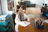 Zdjęcie "młoda kobieta studiuje i pisze w salonie" może być wykorzystywane do celów osobistych i komercyjnych zgodnie z warunkami zakupionej licencji Royalty-free. Obraz jest dostępny do pobrania w jakości wysokiej rozdzielczości do 5760x3840.