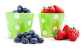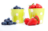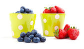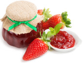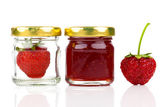 Dżem truskawkowy i świeże jagody izolowane na białym