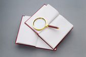 lupę stos książek