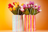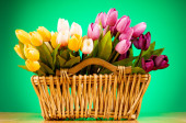 Bukiet kolorowych tulipanów na stole