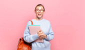 Zdjęcie "młody piękny student czuje się zszokowany, podekscytowany i szczęśliwy, śmiejąc się i świętując sukces, mówiąc wow!" może być wykorzystywane do celów osobistych i komercyjnych zgodnie z warunkami zakupionej licencji Royalty-free. Obraz jest dostępny do pobrania w jakości wysokiej rozdzielczości do 5760x3840.