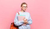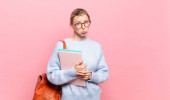 Zdjęcie "młody piękny student czuje się zaskoczony i zdezorientowany, z głupim, oszołomiony wyraz twarzy patrząc na coś nieoczekiwanego" może być wykorzystywane do celów osobistych i komercyjnych zgodnie z warunkami zakupionej licencji Royalty-free. Obraz jest dostępny do pobrania w jakości wysokiej rozdzielczości do 5760x3840.