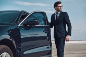 przystojny mężczyzna siedzi w samochodzie