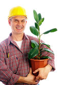człowiek gospodarstwa roślin i łopata
