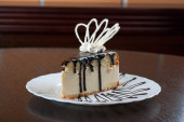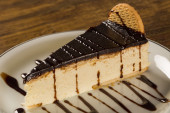 zbliżenie świeży ciastko czekolada na drewnianym stołem