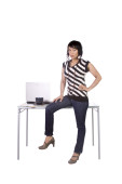 Sexy kobieta siedzi na biurku