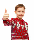 blond dziecko toddler chłopiec pasiastą koszulę, trzymając palce się, s