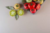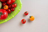 świeże pomidory na tle stołu kiktchen
