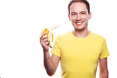 uśmiechający się przystojny mężczyzna żonglerka owoce