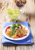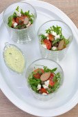 Sałatka z kuskusem i jajkiem, czerwonego grejpfruta i tofu