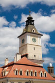 niski kąt widzenia wieży zegarowej w Cytadeli sighisoara w Transylwanii, Rumunia.