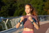Zdjęcie "Sportowa czerwona głowa fitness kobieta w odzieży sportowej robi ćwiczenia deski na moście" może być wykorzystywane do celów osobistych i komercyjnych zgodnie z warunkami zakupionej licencji Royalty-free. Obraz jest dostępny do pobrania w jakości wysokiej rozdzielczości do 5760x3840.