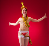 pin-up w stylu dziewczyna siedzi na krześle