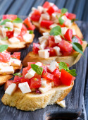 włoski bruschetta z pomidorami, parmezan, czosnku i oliwy z oliwek
