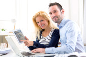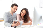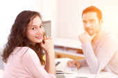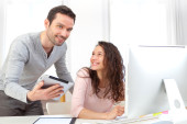 młody atrakcyjny współpracowników w biurze