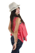 portret dziewczynki turystycznych na białym tle