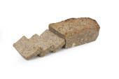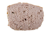 Upieczony pasztet w jednym kawałku i pokrojony na plasterki, izolowany na białym tle. Tradycyjny produkt mięsny z mięsa, ziół, przypraw. Packshot zdjęcie, do projektowania pakietów, szablon. Przysmak polski.