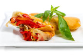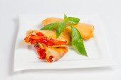 przepyszne krewetki gotowane na płytce na białym tle