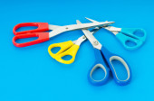 Colorful scissors on the color paper background