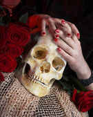 kobieta w róż i czaszki