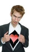 mężczyzna w czarnym kolorze sercem sto Dolar wewnątrz niego