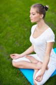 atrakcyjną dziewczyną w pozie jogi na świeżym powietrzu