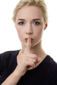 młodych kobiet mówi ssshhh do zachowania milczenia na białym tle