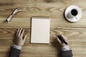 młody biznesmen, pracuje w biurze, w jego miejscu pracy.