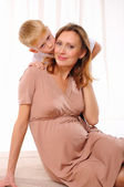 mały chłopiec i jego matką w ciąży spędzić czas razem.