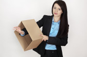 entrega - de transferência de exploração de mulher com copyspace em papelão b